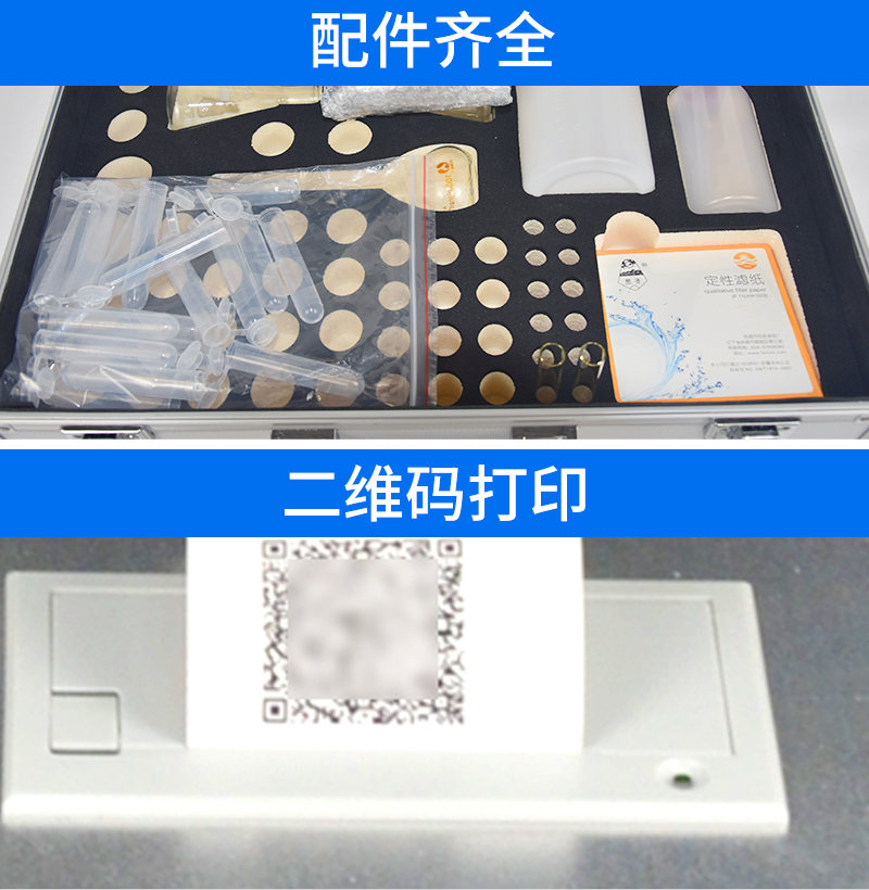 18、內(nèi)置新一代高速熱敏打印機(jī)(無需色帶),打印內(nèi)容包含:檢測單位、檢測人員、檢測項目、通道號、吸光度、養(yǎng)分含量(mg/kg)、檢測時間、以及二維碼等信息